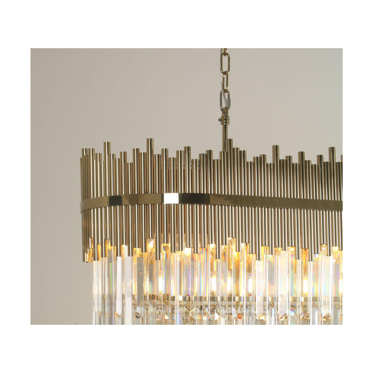 The myth is shaped into a luxury lighting suspension and present in every handmade crystal. The Oval polished gold metal conceives an exclusive pattern of lighting refraction and create fantastical shades on their surroundings. Designed to brighten a contemporary space with the most elegant presence. These pieces combine classic forms with modern appeal, delivering the finest in your lighting and decor needs. In addition to providing an outstanding piece, we are also able to create this piece in Round Shape, multiple sizes, crystal hue, and finish you need.