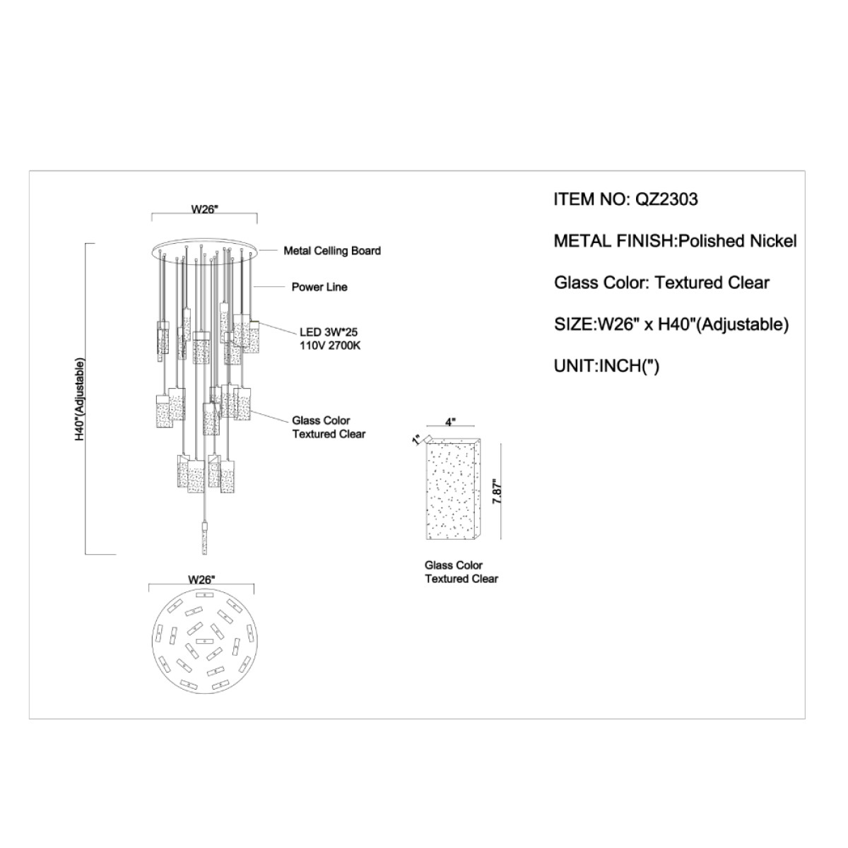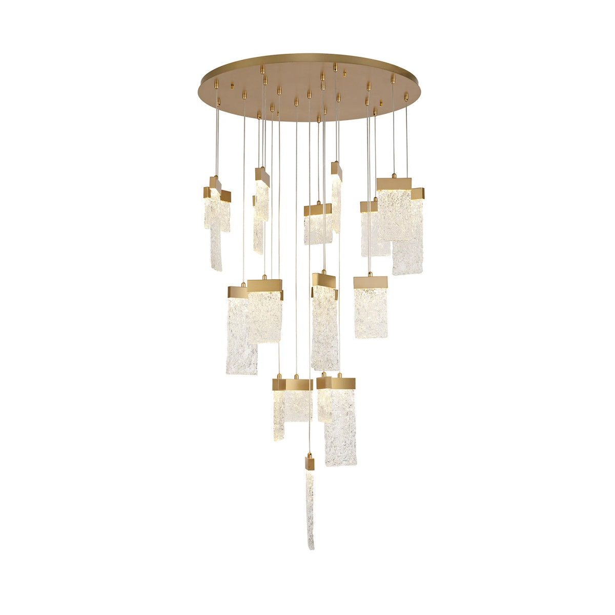 The QZ2303 Stockholm Chandelier blends simplicity with striking elegance. Featuring suspended panels of crystallized ice glass, this piece radiates a serene, ambient glow — evoking the still beauty of Scandinavian winters. Its clean lines and textural glass elements make it a bold yet refined addition to both contemporary and classic interiors. This chandelier casts an aura of blissfulness, creating a tranquil and inviting atmosphere in any space. Alan Mizrahi Lighting also offers Interior Coaching — a personalized service providing lighting advice directly in your home. Our team of experts will help you curate a warm and cohesive atmosphere, guiding you through the decorative process to bring your vision to life.