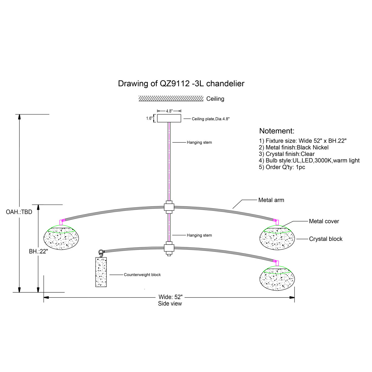 Metal Finished: Blackened Nickel (Different finish available at no additional cost)