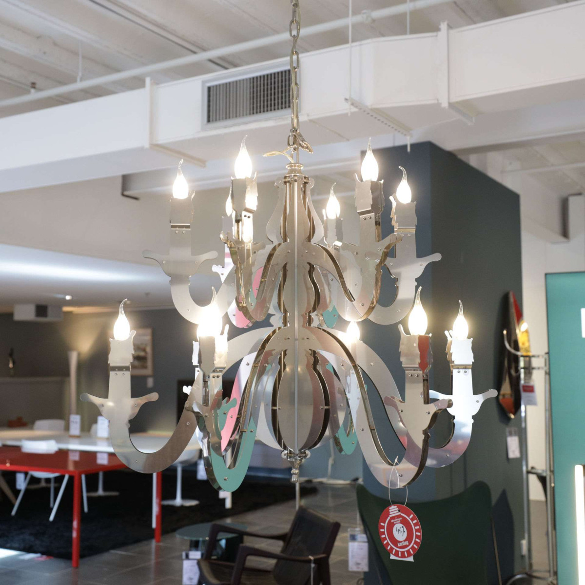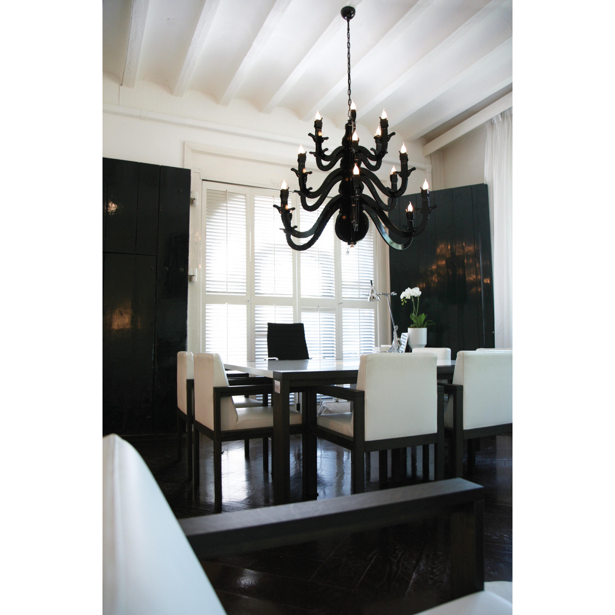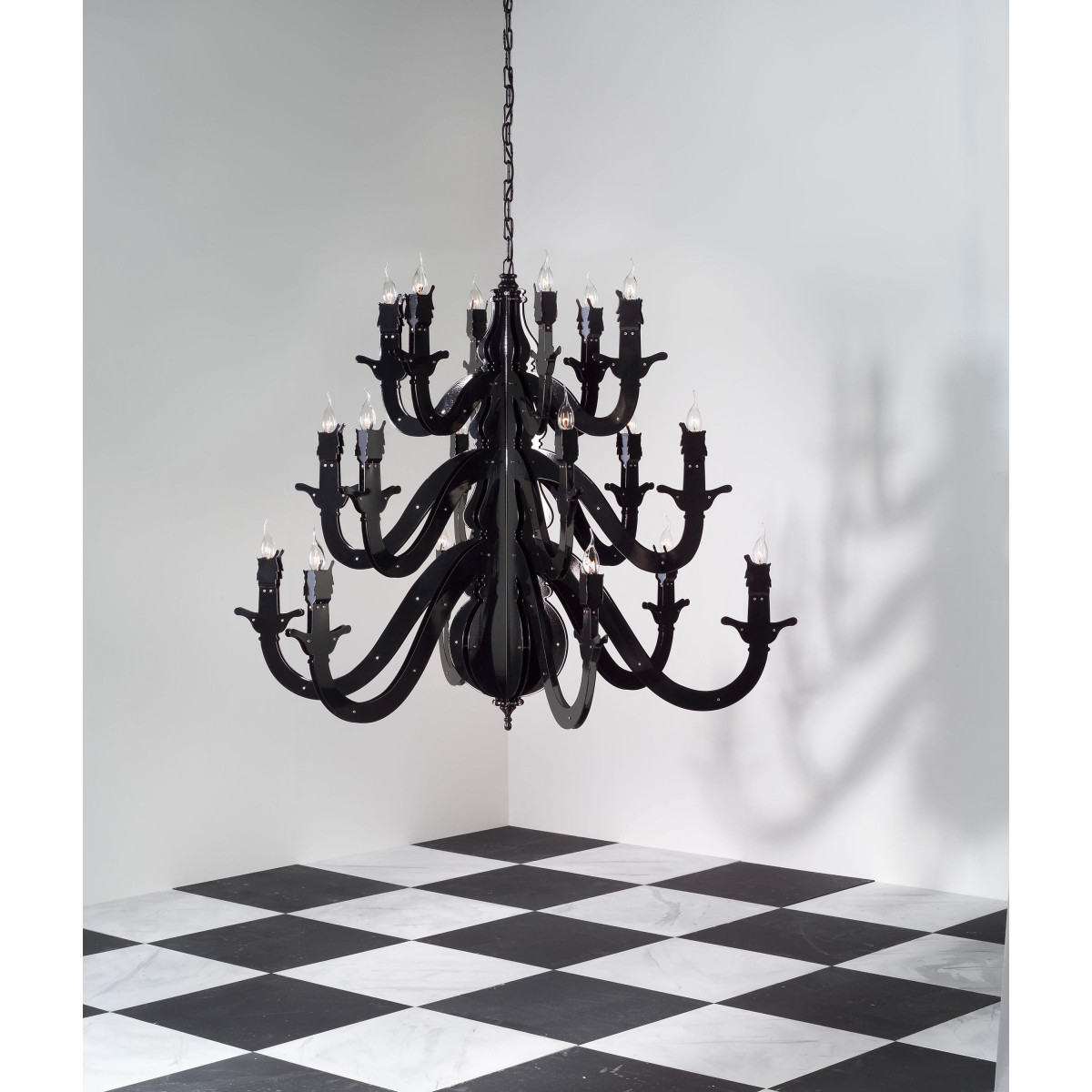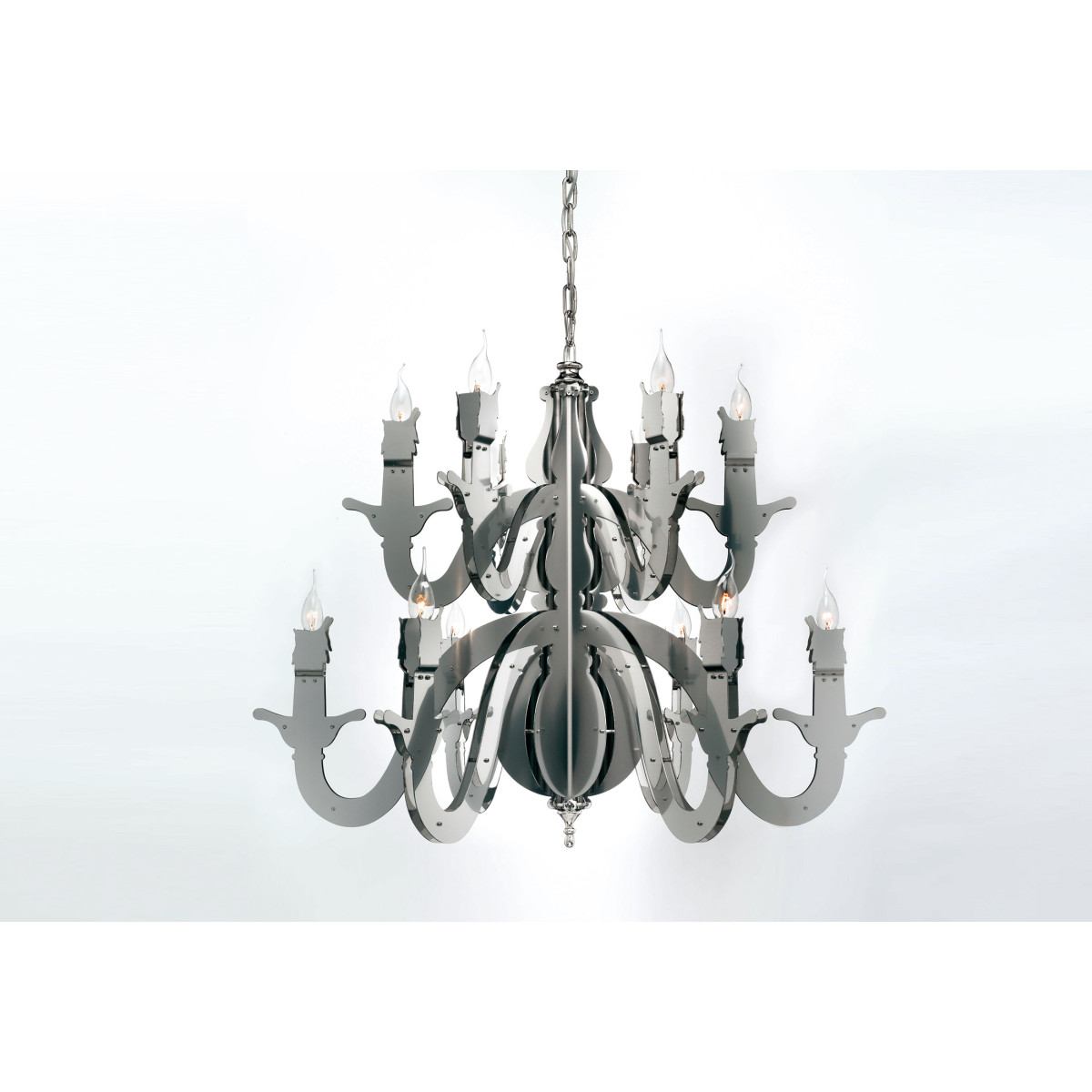 Claire – obscure; mystique and mystery, Rembrandt’s spirit lingers on in the Night Watch, a ‘dressed-down’ chandelier which reaches back to the basic design of the early copper chandelier. Simple and bare, yet glowing and warm,It is tradition into today’s space. The monumental two-dimensional shapes, breathing the 17th century, are handcrafted together with nuts and bolts and powder coated in a range of trendy colors. Past, present and future dissolve into one glowing celebration of the Autonomy of Dutch Design throughout the ages.