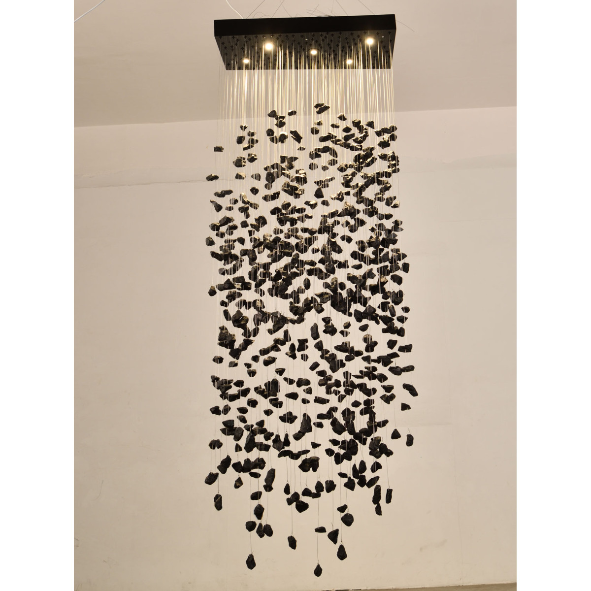 The rediscovery of rock crystal as a conductor of a magical rare light source pushed designers to define creation within a repertoire of ever-changing material making each piece an original work. The natural and precious nature of this crystal becomes the first argument of this seductive lighting. Their size, is the first seducing argument, broken lines streak to the ceiling, squares and rectangles of light create a subtly receptive universe, rock crystal brings mystery and uniqueness to these creations. From a single production principle, it has made a line that is eternal, paradoxically, always renewed and always the same. This collection allows us the freedom to become the favorite of the French haute couture. Customized sizes realized by our development department become available for luxury boutiques such as Cartier, Vacheron-Constantin, Hermes in Paris, Louis Vuitton in Cannes, the Chanel stand at the biennale of antiquaries, and many others projects.