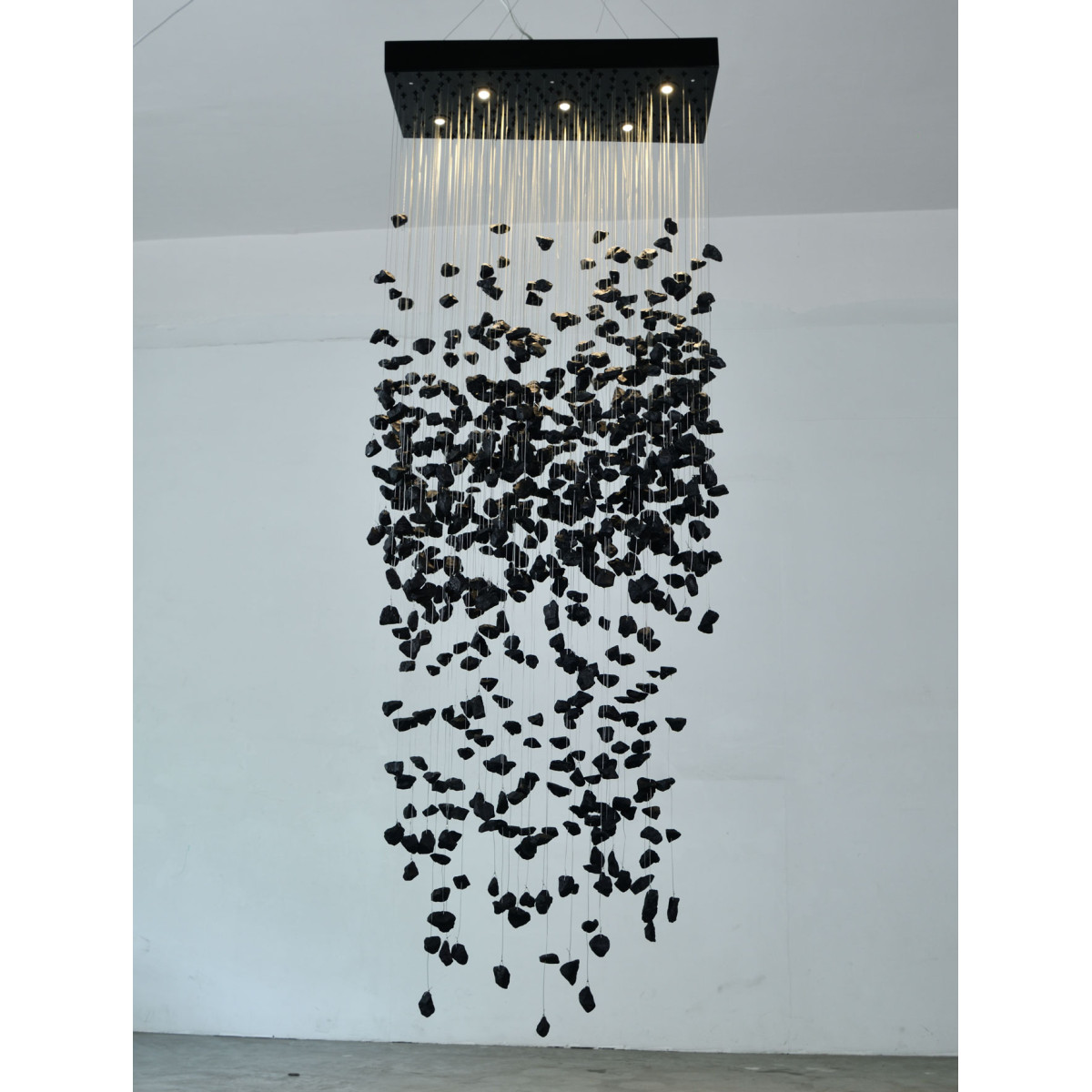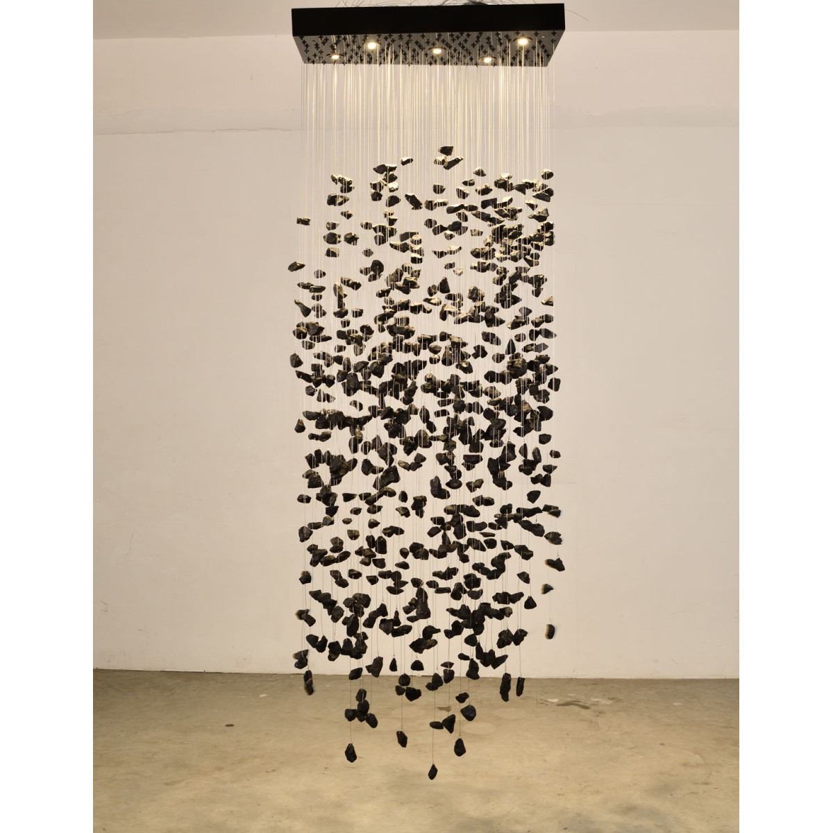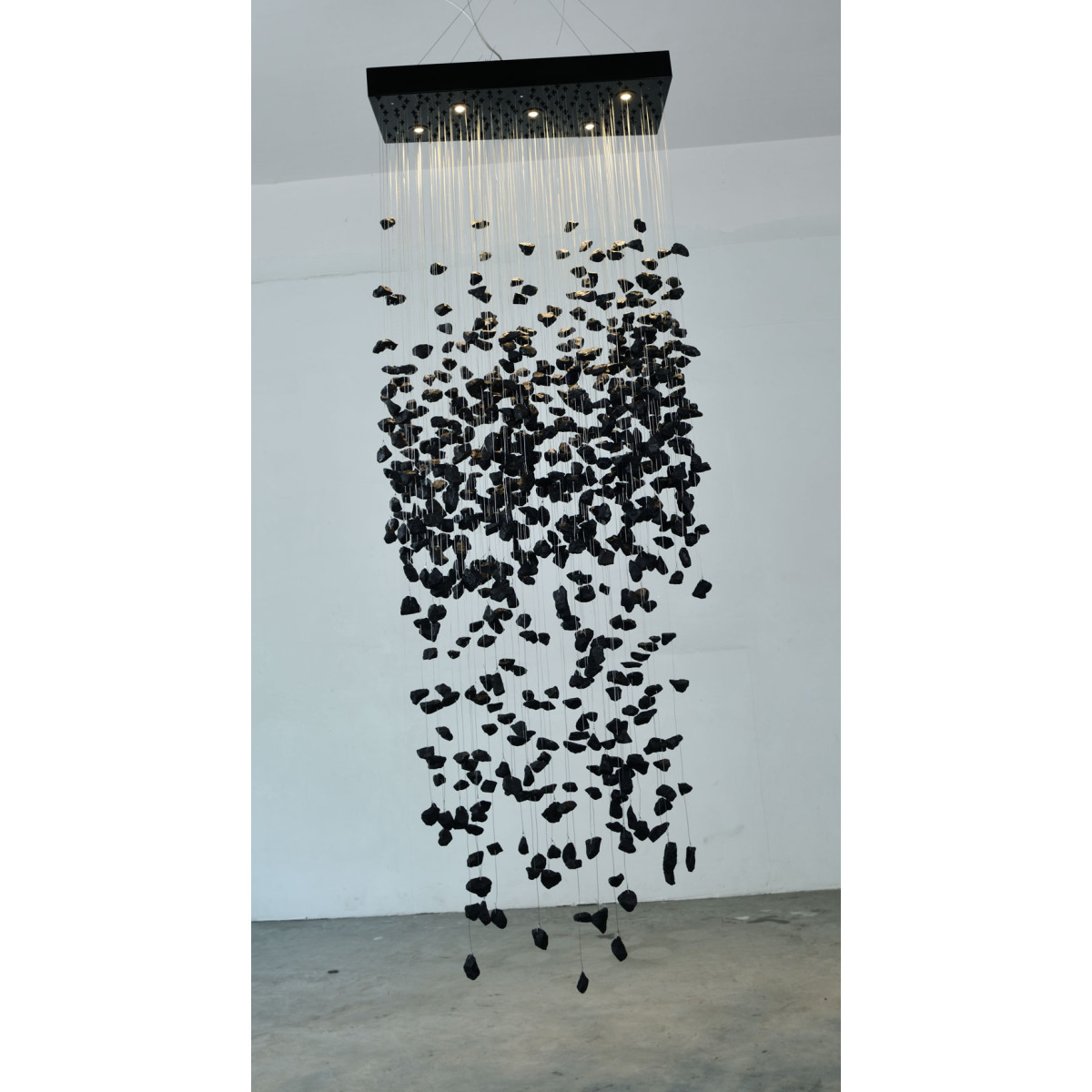 The rediscovery of rock crystal as a conductor of a magical rare light source pushed designers to define creation within a repertoire of ever-changing material making each piece an original work. The natural and precious nature of this crystal becomes the first argument of this seductive lighting. Their size, is the first seducing argument, broken lines streak to the ceiling, squares and rectangles of light create a subtly receptive universe, rock crystal brings mystery and uniqueness to these creations. From a single production principle, it has made a line that is eternal, paradoxically, always renewed and always the same. This collection allows us the freedom to become the favorite of the French haute couture. Customized sizes realized by our development department become available for luxury boutiques such as Cartier, Vacheron-Constantin, Hermes in Paris, Louis Vuitton in Cannes, the Chanel stand at the biennale of antiquaries, and many others projects.
